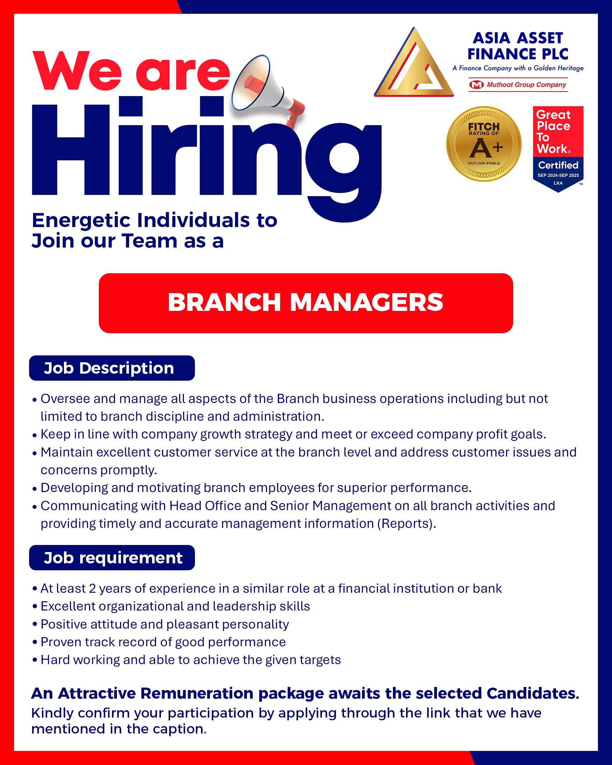 | 25 | POST OF ASSISTANT MANAGER ELPITIYA | | |