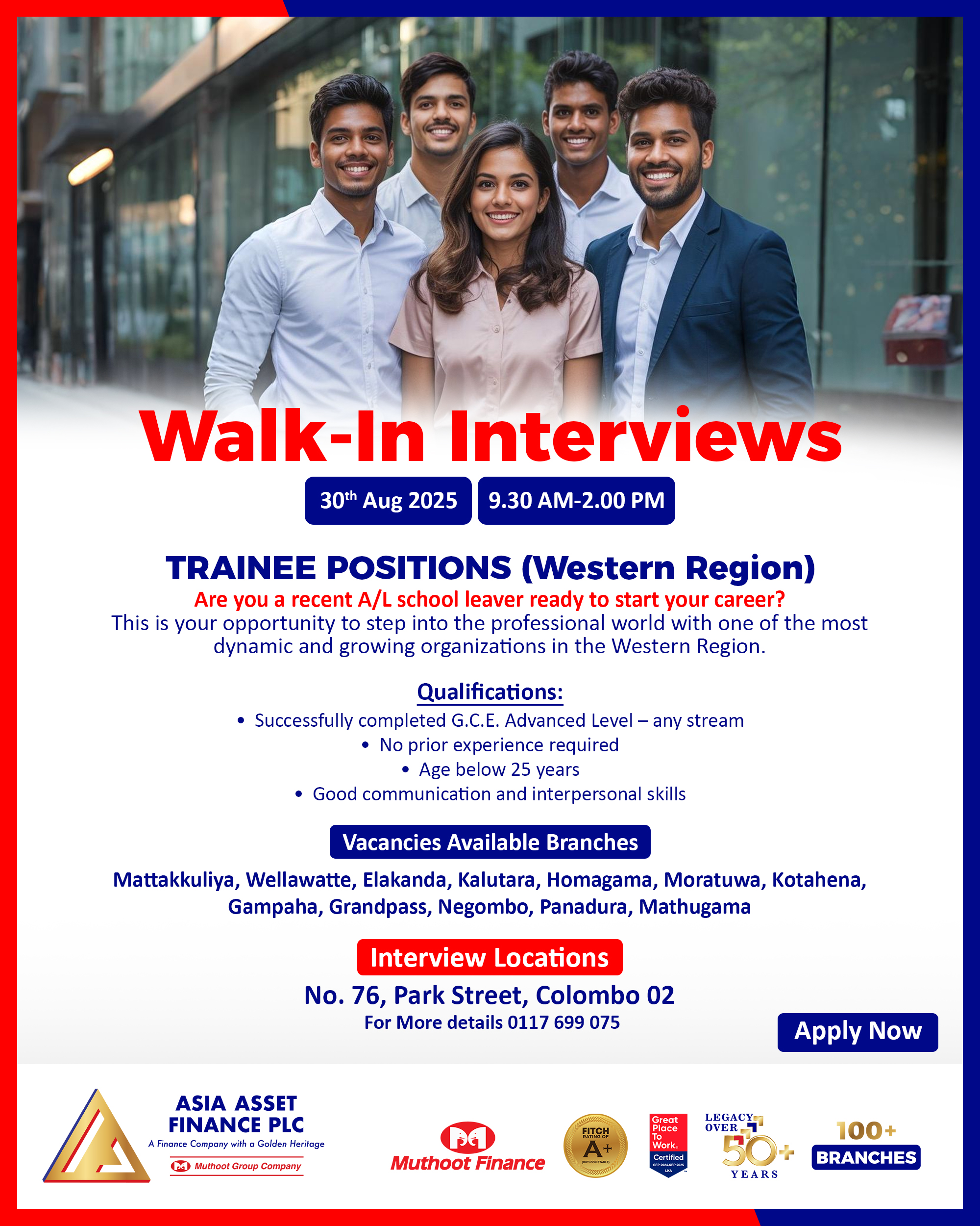 | 35 | POST OF CUSTOMER CARE ASSISTANT - GOLD LOANS ELPITIYA | | |